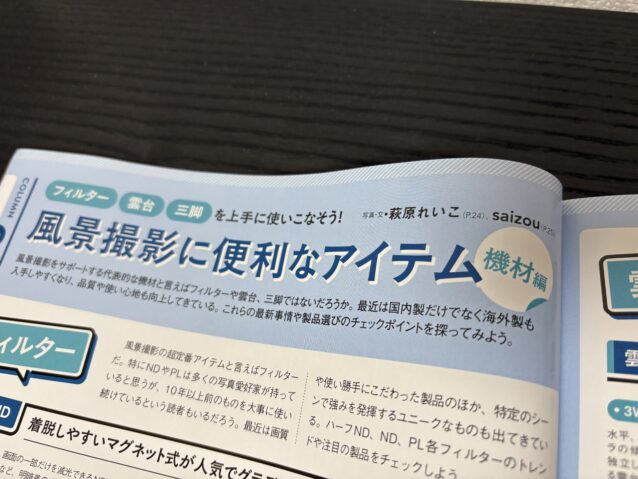 さらに「風景撮影に便利なアイテム 機材編」として、フ雲台、三脚の解説記事を執筆しました。