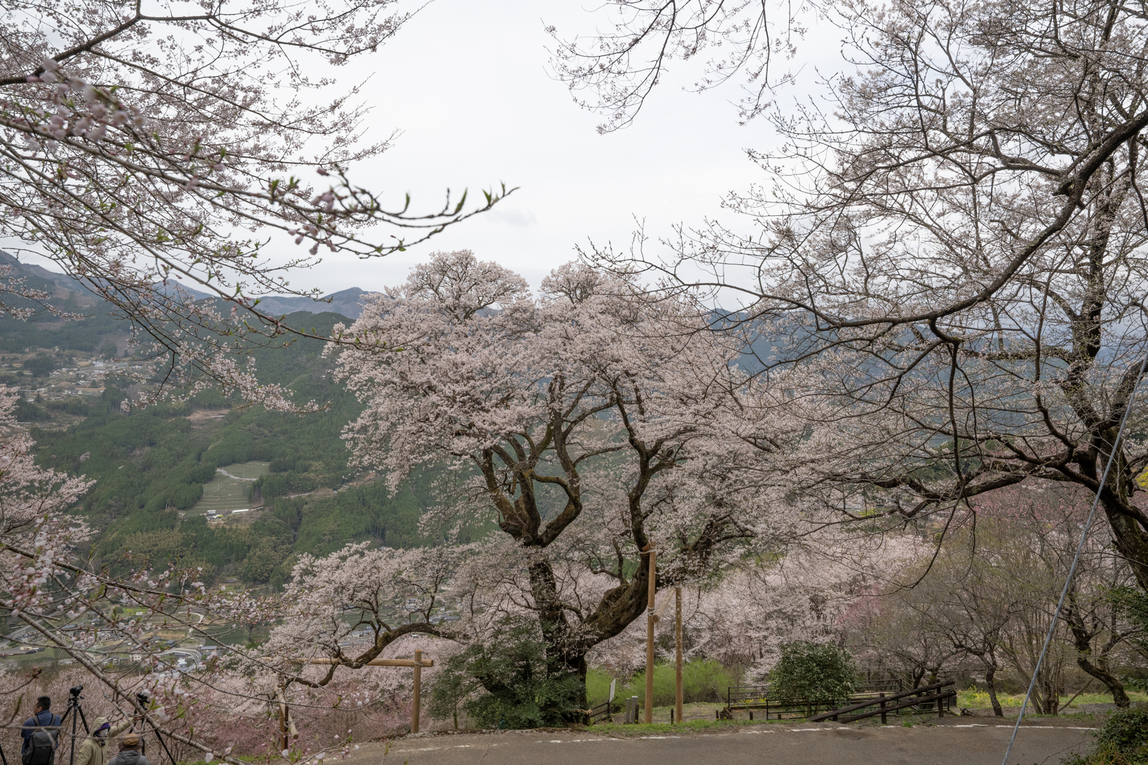 きれいな桜を見つけて、広角レンズで撮影しました。 桜も入れたい、背景の山も入れたい。 広角レンズなら全部入るはずだ!