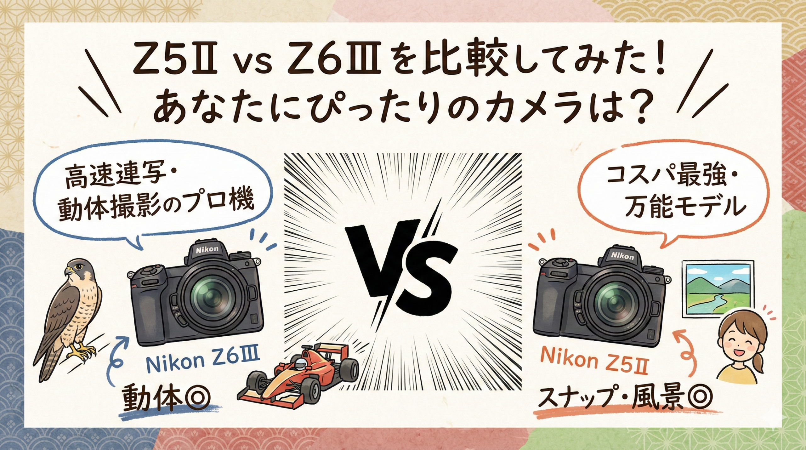 ということで、特にこだわりがないのであればコスパ最強のZ5II、動体メインであればZ6III。